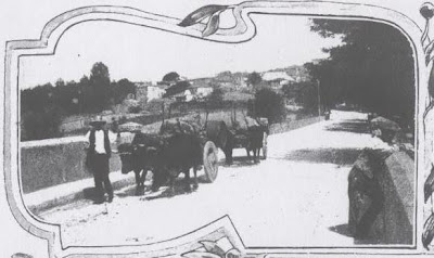 Estes dois bilhetes postais são do tempo da Monarquia, isto é antes de 1910. No primeiro podemos ver o mau estado da rua (terra) e uma criança com um menino ao colo e com o cântaro de água à cabeça. Tudo isto, felizmente, já faz parte da história!